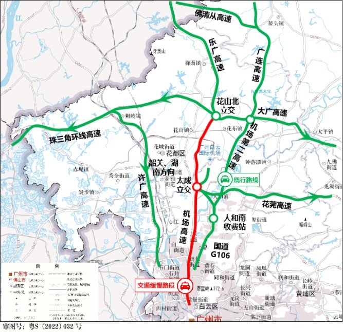 建议来自韶关、湖南方向的车主尽量避开高峰时间返城,高峰期返城的车主可以通过国道G106等地方道路或许广高速、广连高速(连接机场第二高速)进行绕行,避开机场高速行车缓慢路段。