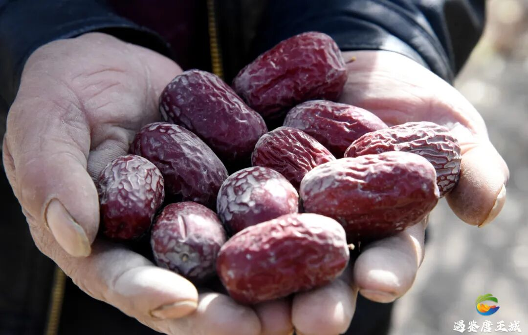 据了解,三师红枣主要为灰枣,具有皮薄、肉厚、核小、味甜等特点,干基含糖量高于75%,含水量达到22%。其在枝头“吊干”后再经晾晒,水分含量更低,更便于储存和运输,也有利于将鲜枣的营养价值牢牢锁进果肉中。