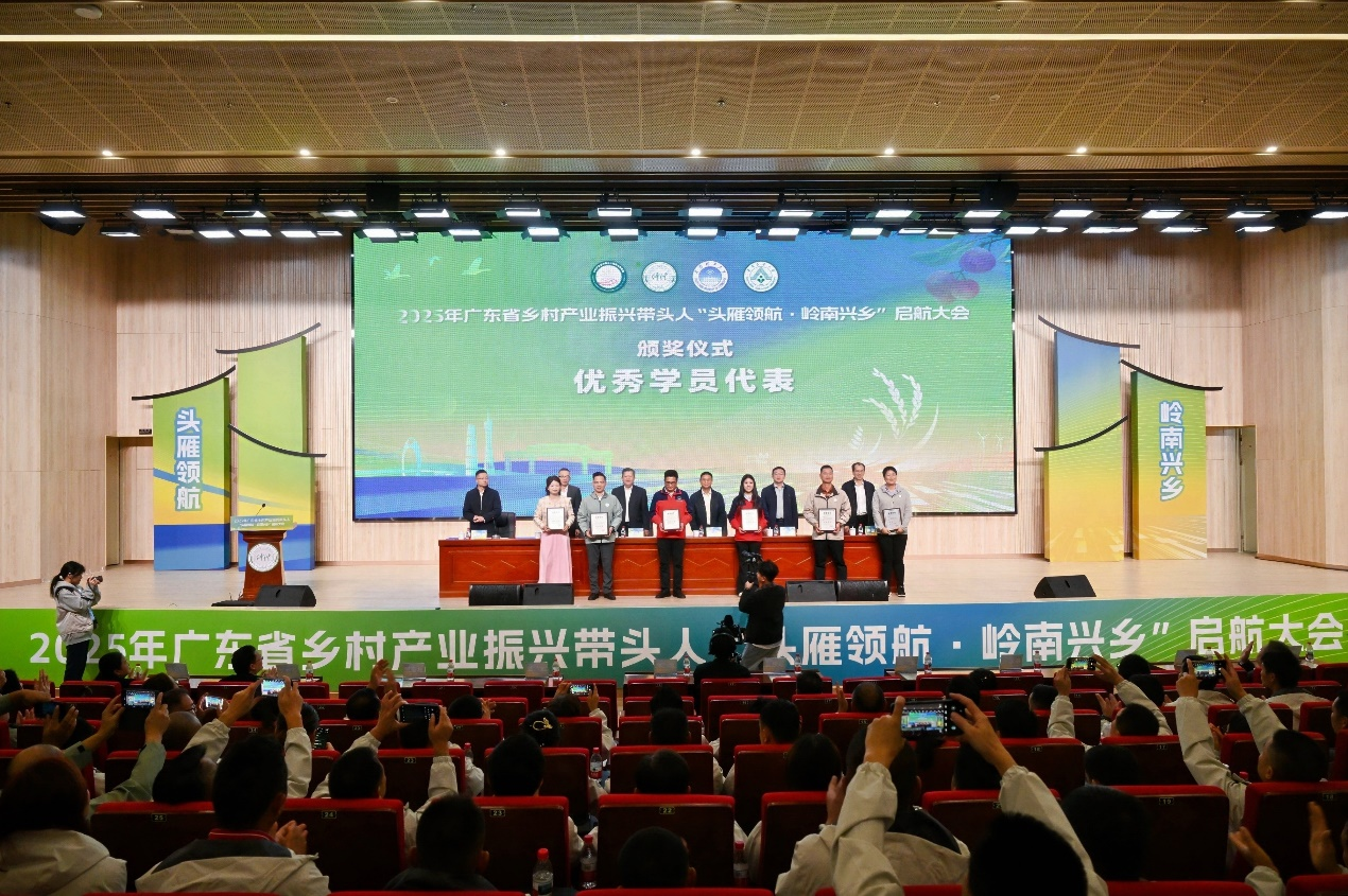 活动现场举行了优秀教师、优秀导师和优秀学员颁奖仪式,表彰在2024年培育工作中表现突出的一批优秀教师、导师及学员。其中受邀登台领奖的优秀学员代表包括广东鱼泽原养殖有限公司游晓瑜、广州市番禺区大石辉瑶化肥经营公司林志辉、揭西县大统农业发展有限公司方敏、广东京橘药业有限公司庞富、广东文丰农业发展有限公司黎成丰、广州雪玉茶业有限公司吴雪彩等6人。他们在教师和导师的教学与指导中不断学习成长,投身南粤农村“学以致用、带动共富”,在乡村产业振兴实践中写出了一篇篇高分答卷。